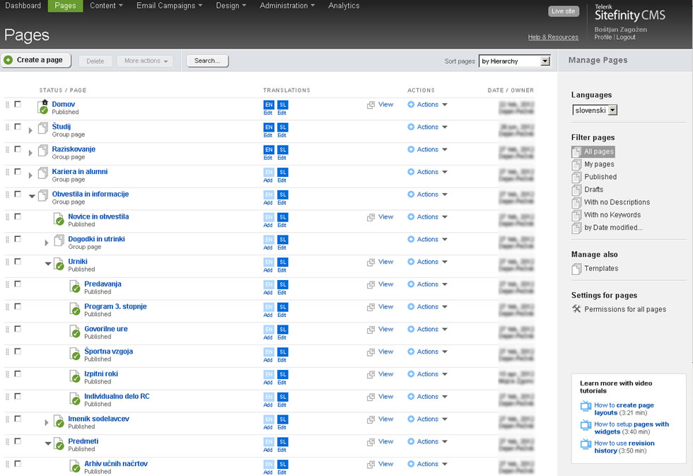 Sistem urejanja vsebine spletnih strani Content Management je primeren za vse, ki želijo popolno kontrolo nad vsebino in izgledom spletne strani. Osnova urejevalnika je eden izmed najboljših sistemov na področju urejevalnikov spletne vsebine - Sitefinity podjetja Progress.